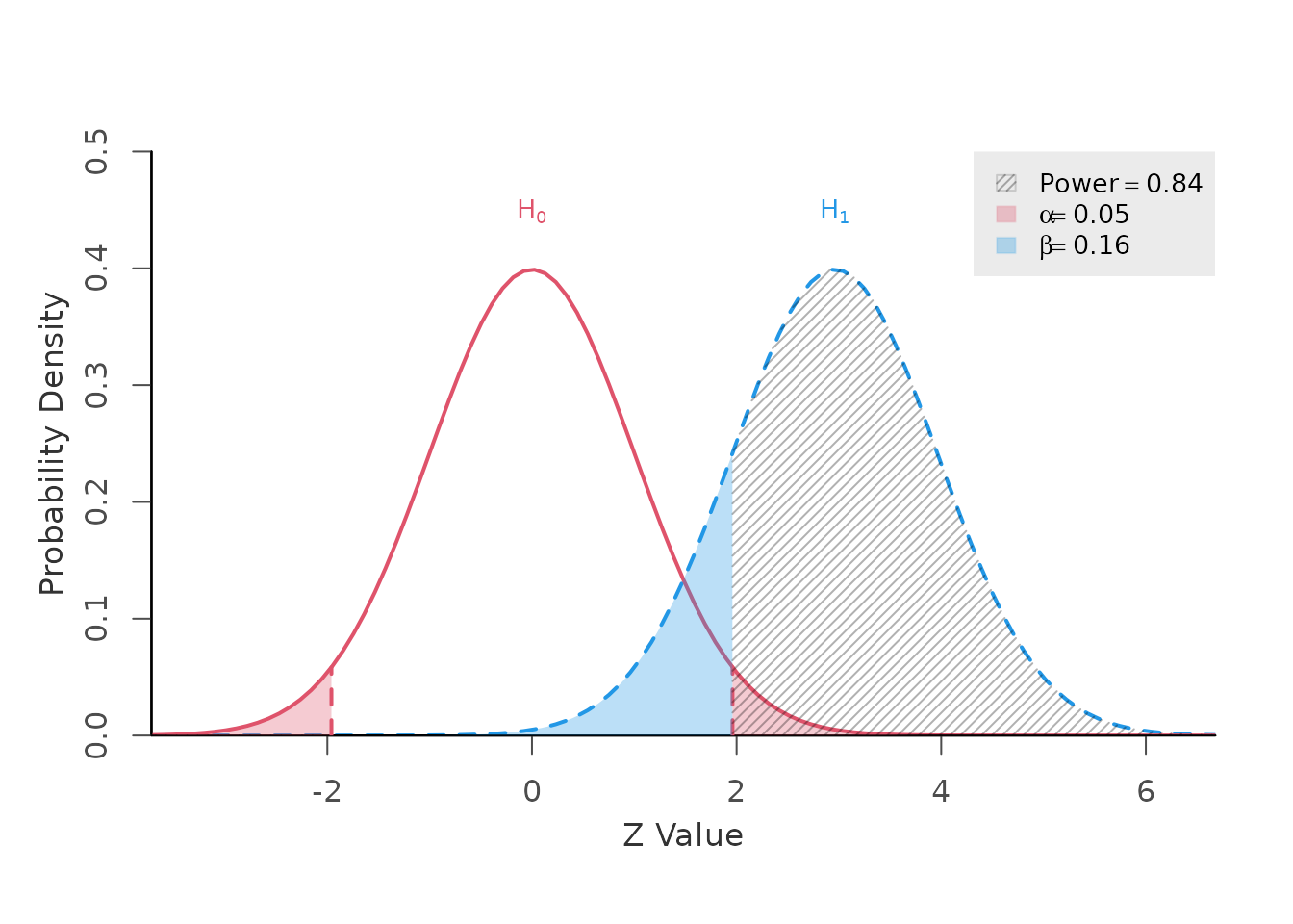 alpha = 0.05, # type 1 error rate