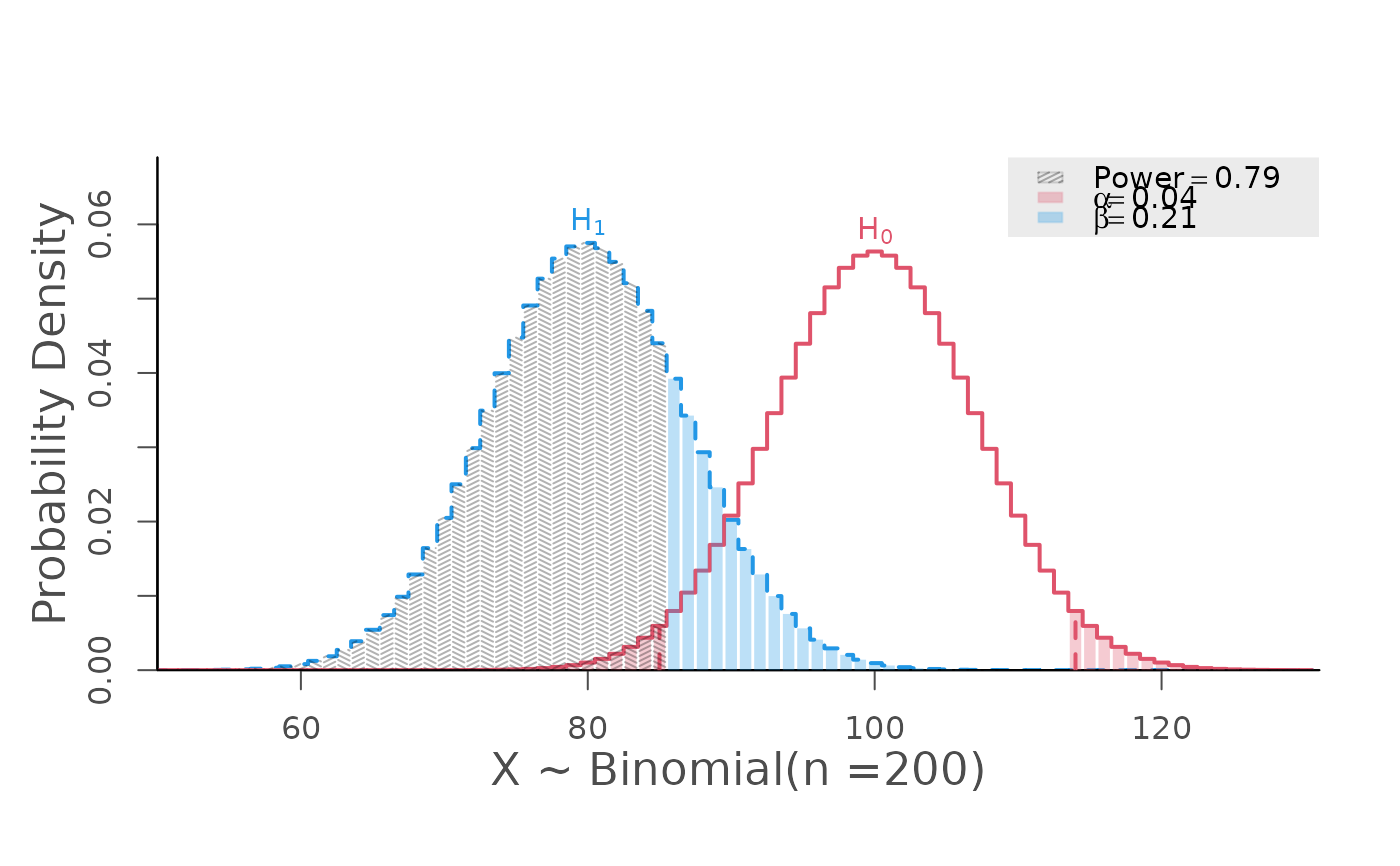 power.binom.test(size = 200, prob = 0.5, null.prob = c(0.4, 0.6),